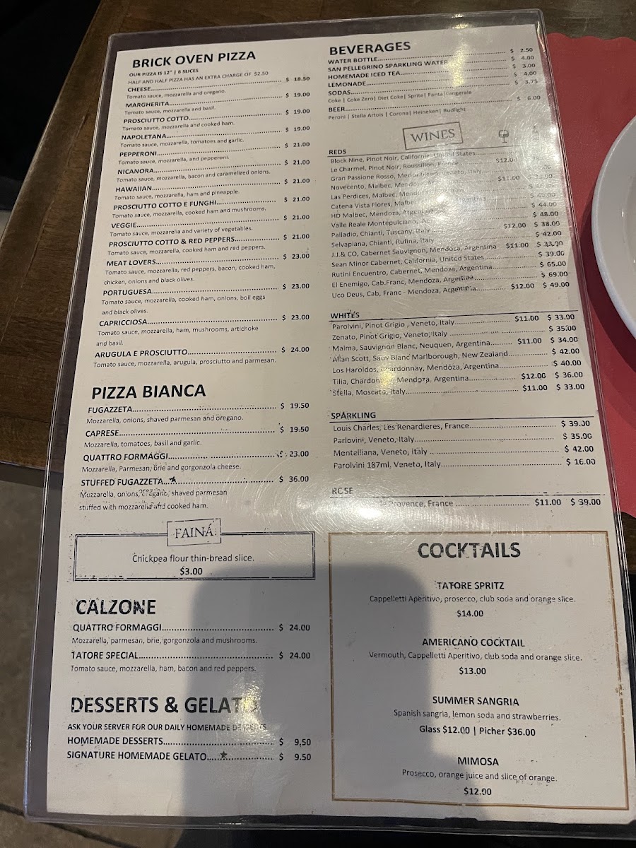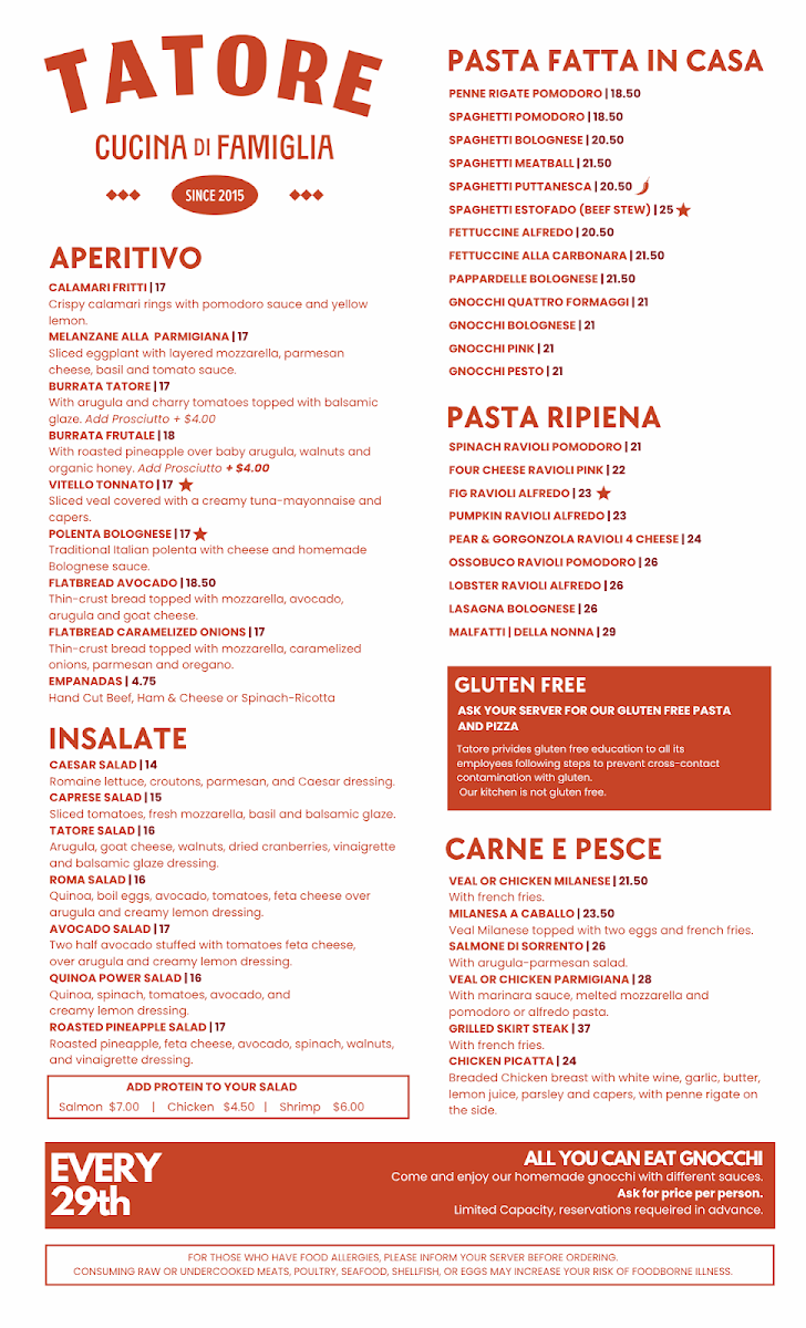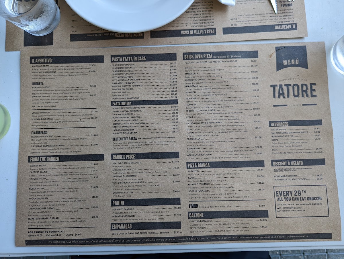 Introducing Tatore, a culinary gem located at 14730 Biscayne Blvd, North Miami Beach. This upscale restaurant blends the best of Italian and Argentinian flavors, offering a diverse menu that promises to tantalize your taste buds. Highlights include the rich Veal Milanese served with crispy fries and the delightful Smoked Salmon plate, satisfying both meat lovers and seafood enthusiasts alike. The Brick Oven Pizzas are a must-try, with the Nantanes and Fugazzeta garnering rave reviews for their authentic flavor and generous toppings. Each dish reflects the chef's dedication to freshness and creativity, as testified by patrons who praise the inviting atmosphere and attentive service. From unique appetizers to delectable desserts like Dulce de Leche ice cream, every visit to Tatore feels like a special occasion. Join the chorus of satisfied diners and experience what makes Tatore a standout choice for a memorable dining experience.